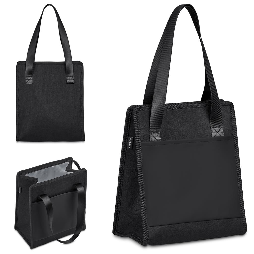 Keep drinks chilled with the Alex Varga Birkdale 9-Can Cooler. This stylish bag, made from felt and waterproof PU, has an aluminium foil lining and extra storage pockets. It is ideal for corporate events and presenting refreshments.