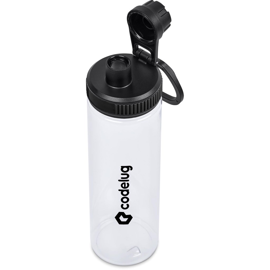 This Altitude Carmona 750ml recycled PET water bottle serves as a practical item for promotional campaigns. It features a leakproof lid and a smaller spout for simple drinking, plus a finger loop handle for easy carrying. A good way to display your brand.