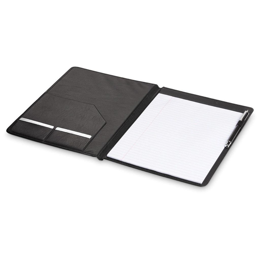 Keep documents organised with the Altitude Windsor A4 Folder. This folder features a pebble grain ultrabond surface, an internal document slot, two card slots, and a pen loop. A writing pad is also included. It makes a professional impression for any meeting.