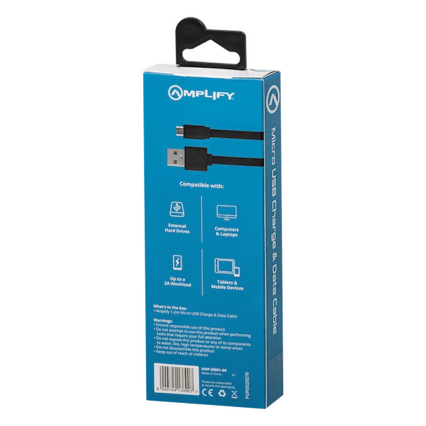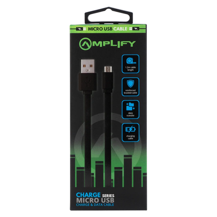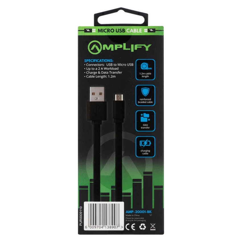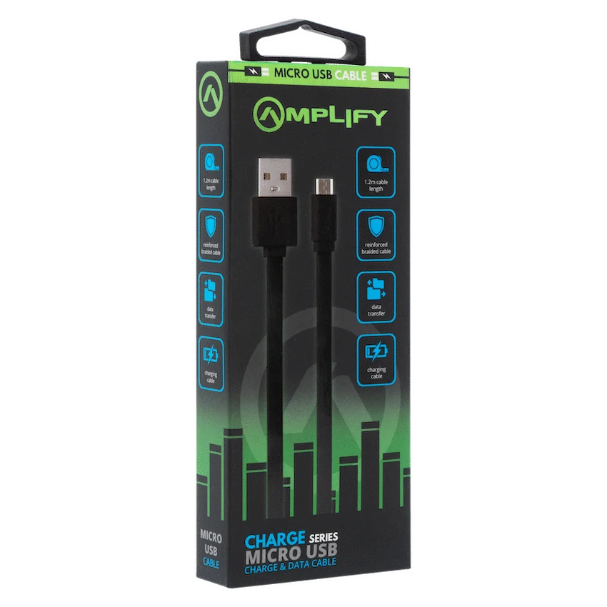 This Amplify Charge Series Micro USB Charge Cable offers reliable charging and data transfer. Its 1.2-metre length and durable connectors suit everyday use. Power your Micro USB devices dependably with this cable from Amplify.