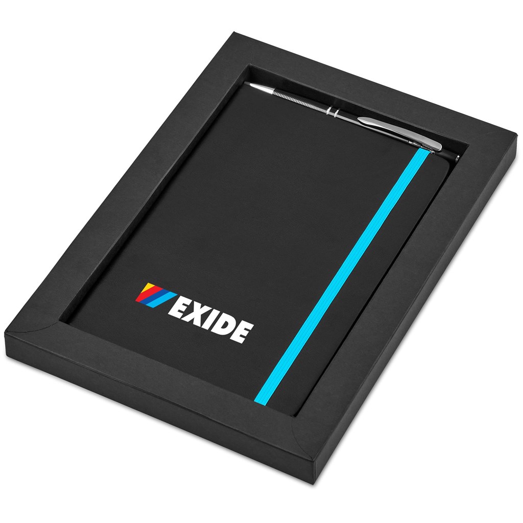 The Carter Notebook & Pen Set in Cyan is a must-have for anyone looking to stay organized in style. The set includes a high-quality notebook and a matching pen, both featuring a vibrant cyan color. The notebook is perfect for jotting down notes, ideas, or sketches, while the pen ensures you always have a writing tool on hand. Whether you’re in a meeting, at school, or just out and about, this set is a practical and stylish addition to your everyday essentials.