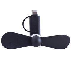 This durable rubberised mobile fan provides convenient cooling. It connects directly to Android or iPhone phones for immediate use. Measuring 55x37x27mm, this fan is an excellent choice for branded promotional campaigns.