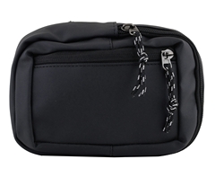 - Features two zippered compartments, including a main section with an inner divider and a front zipper pocket for quick access to items.