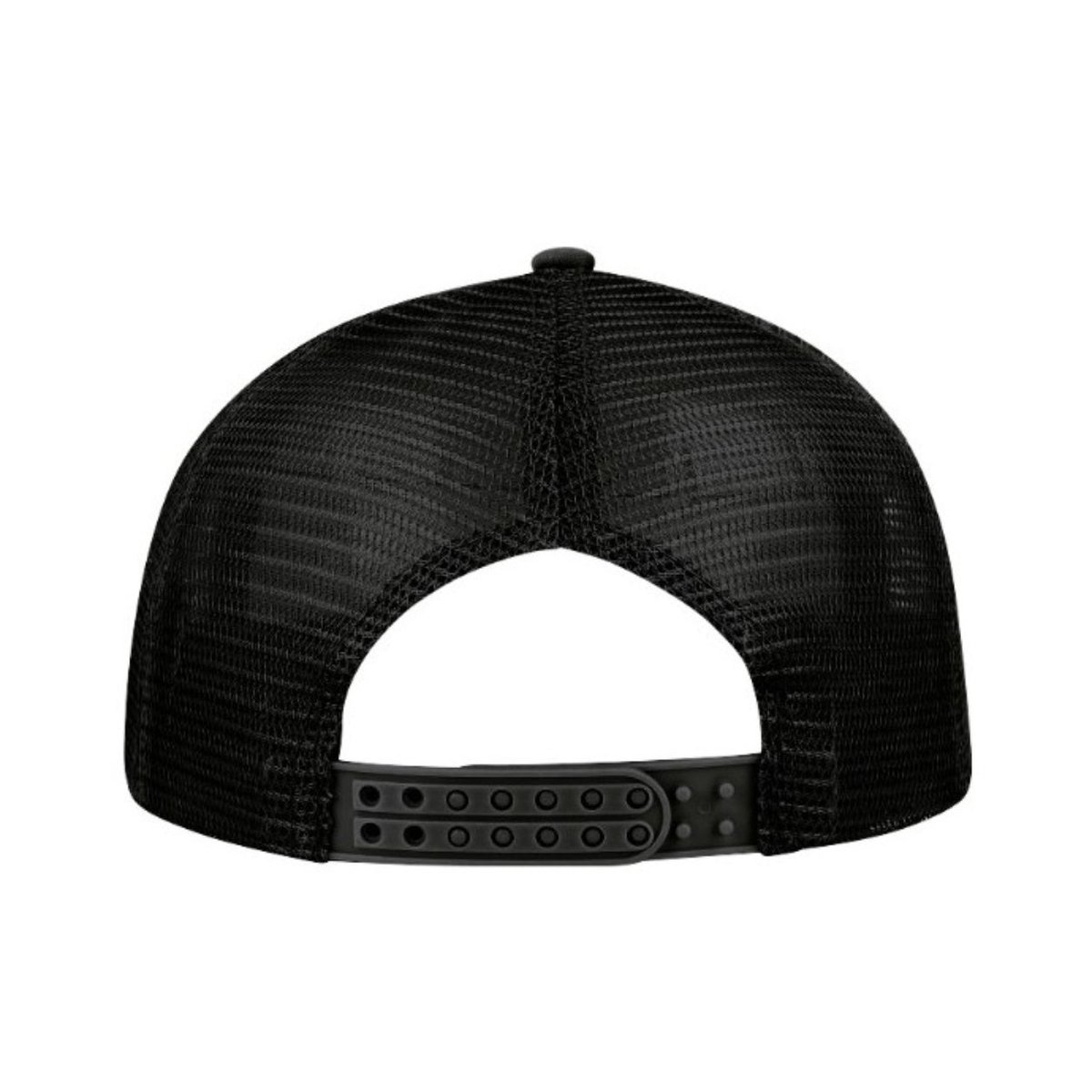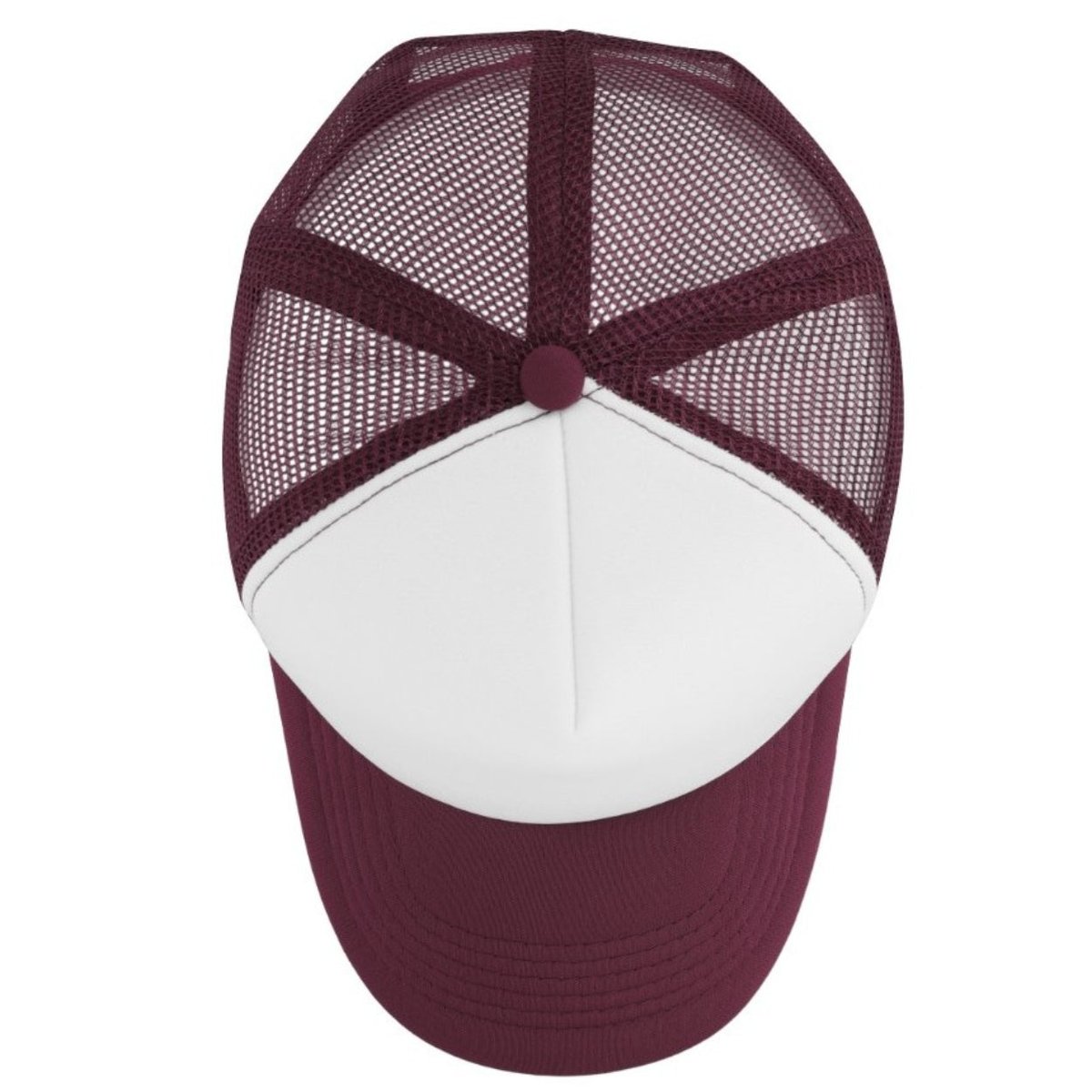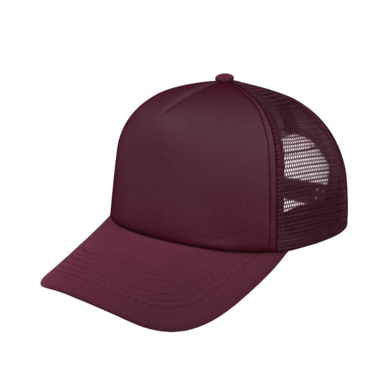 - Features a classic trucker cap design with a curved peak.