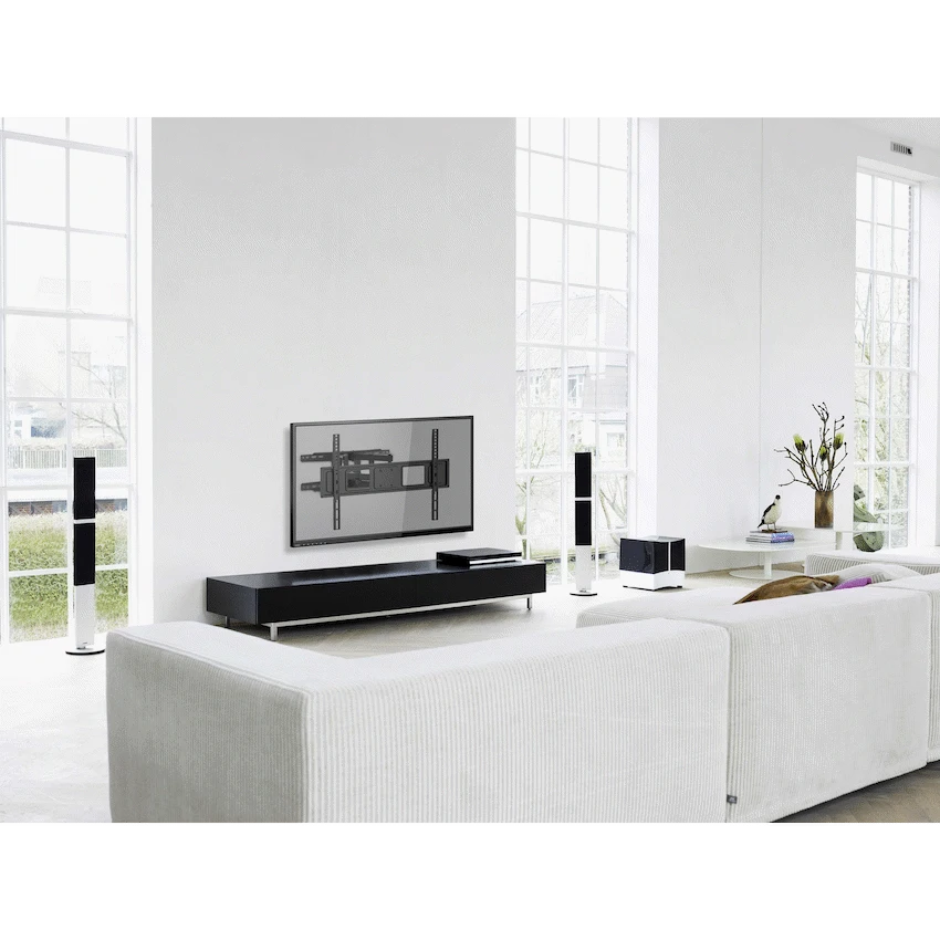 - Supports 37″ to 86″ flat or curved televisions, with a maximum weight capacity of 45kg.