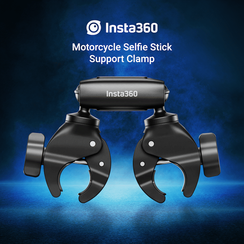 The Insta360 Motorcycle Selfie Stick Support Clamp is a practical accessory for general promotional campaigns, allowing secure mounting of selfie sticks on motorcycles and other vehicles.