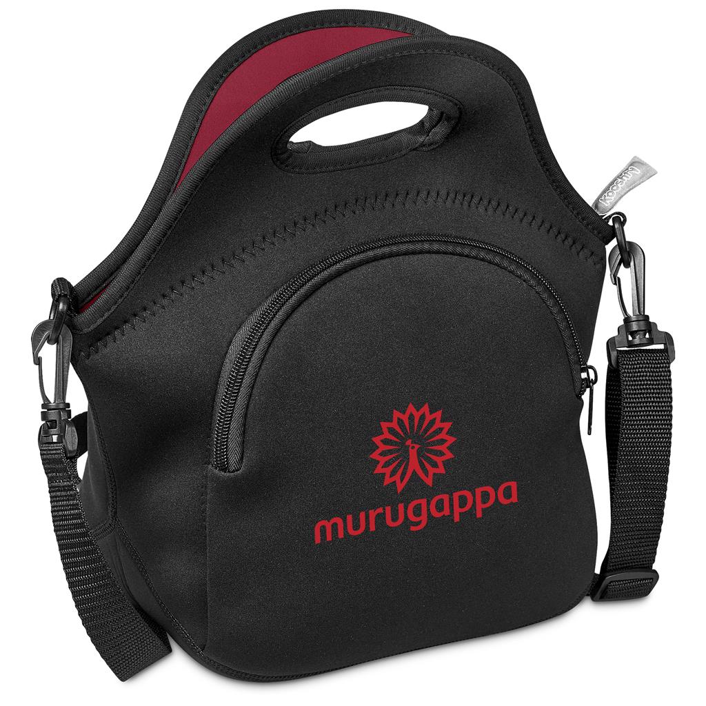 This Kooshty Makiki Lunch Bag keeps your meals cool. Made from insulating neoprene, it features a main compartment and a front zip pocket. Carry it comfortably with the adjustable, detachable strap. A practical Kooshty item for everyday use.