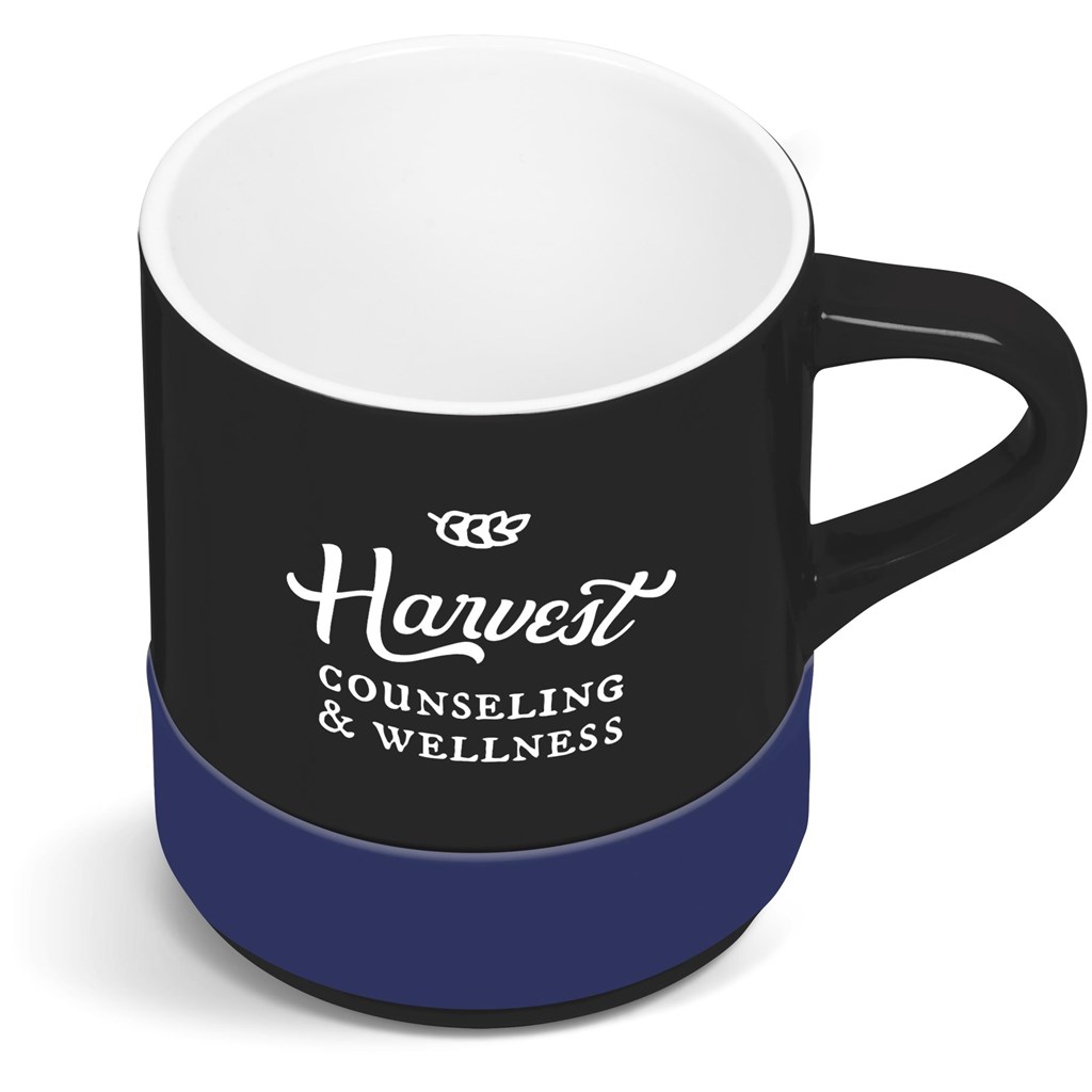 Made from high-quality A-Grade ceramic, this black mug has a silicone band, which accentuates branding which matches the band colour.