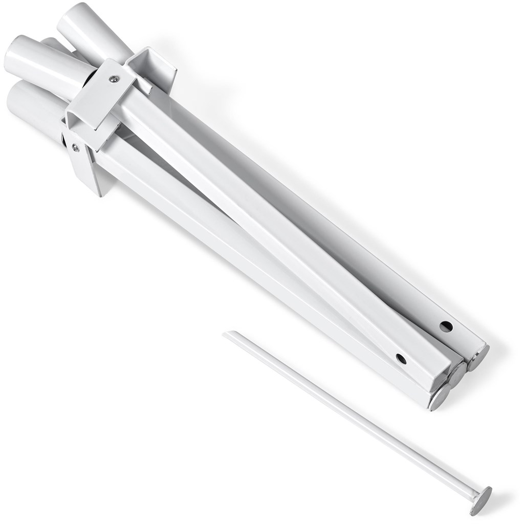 • Hardware consists of four 6m aluminium and steel poles, stored in a polyester oxford bag measuring 144 x 34cm.