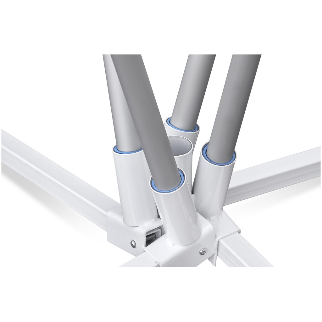 • The stable base is made of steel, measuring 1 x 1m, and comes with a polyester oxford base bag (60 x 20 x 15cm).
