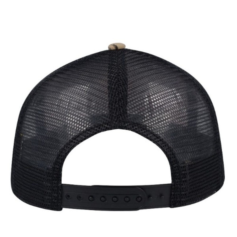 - This cap features a classic trucker design with a Camo Thorn front and a black mesh back.