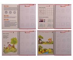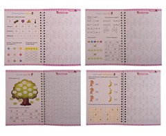 This Magic Practise Copybook Set helps young children learn repeatedly. It includes four books for Alphabet, Numbers, Drawing, and Math, plus a special vanishing ink pen. This practical set is a good gift for promoting early learning skills.