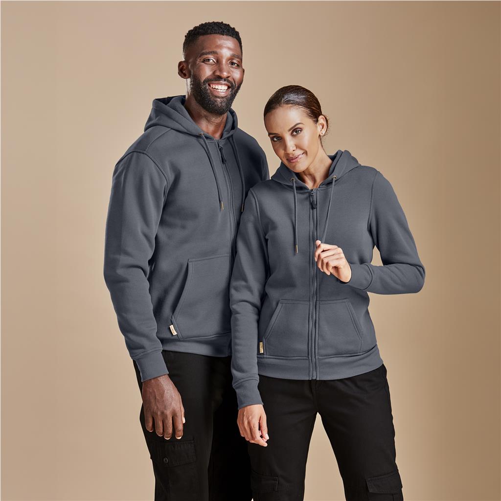 - The design includes a full-length chunky zip with branded pullers and a front kangaroo pocket.