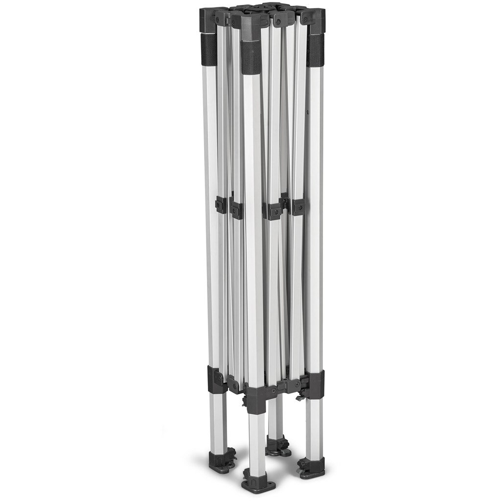 - This 2 x 2m Ovation Sublimated Gazebo features a compact aluminium frame with a hexagonal leg profile, designed for quick assembly.