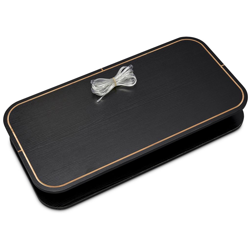 - Includes a durable steel frame with a hydraulic scissor mechanism for smooth, quick setup and a black press board countertop.