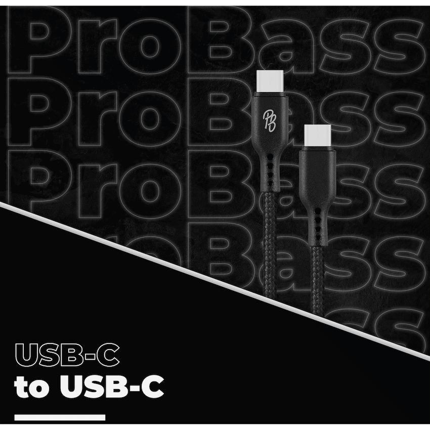 Charge and transfer data quickly with the Pro Bass Chord Series Type-C to Type-C Braided Cable. This 1.2m black cable supports up to 30W fast charging for compatible devices. Its durable braided design resists tangles and wear, making it a reliable Pro Bass accessory.