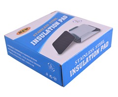 Protect surfaces with this practical six-piece stainless steel coaster set. Each coaster has a non-slip foam base for stability. This durable set, including a matching base, is suitable for promotional branding in any office or home.