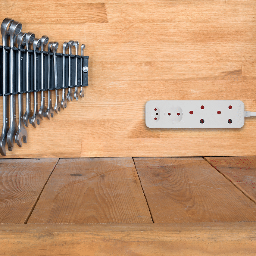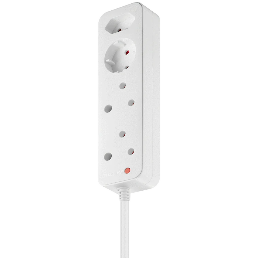 - It features four switched outlets, overload protection with a manual reset button, and safety shutters for child protection.