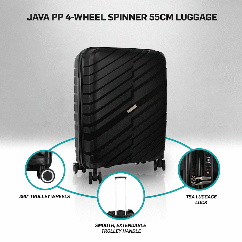 Travelwize Java PP 4-Wheel Spinner 55cm Luggage – Black