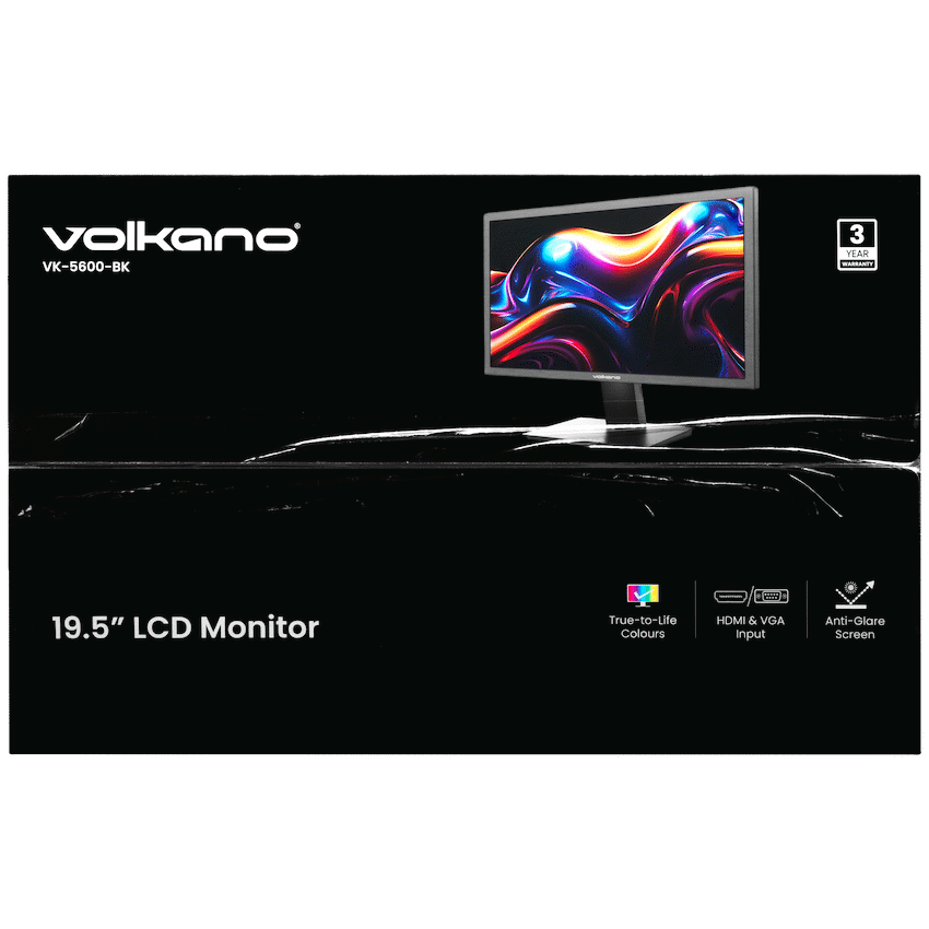 This Volkano 19.5″ HD+ (1600 x 900) TN Monitor provides clear visuals for work or study. It features a 75Hz refresh rate and EyeSaver mode for comfortable viewing. Connect with HDMI or VGA for daily computing with Volkano.