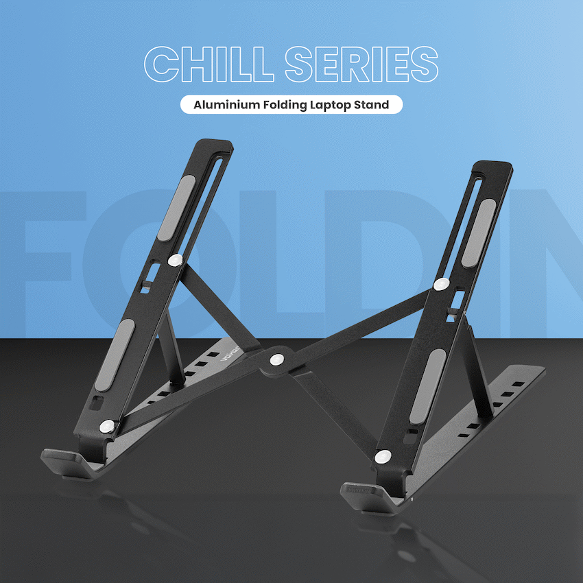 The Volkano Chill Series Aluminium Folding Laptop Stand is a practical item for promotional products, helping users work more comfortably by improving posture and laptop ventilation.