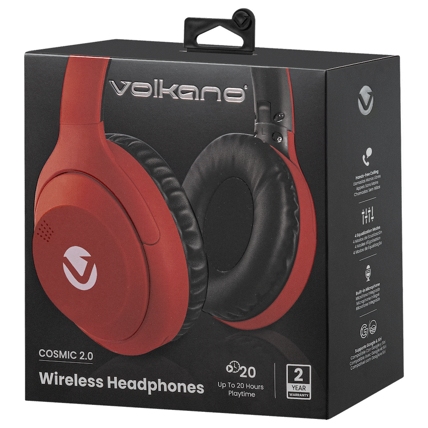 Enjoy extended listening with Volkano Cosmic 2 Series Red Bluetooth Headphones. They provide up to 35 hours of playtime and feature a built-in microphone for clear hands-free calls. This makes the Volkano Cosmic 2 Series a practical audio choice.