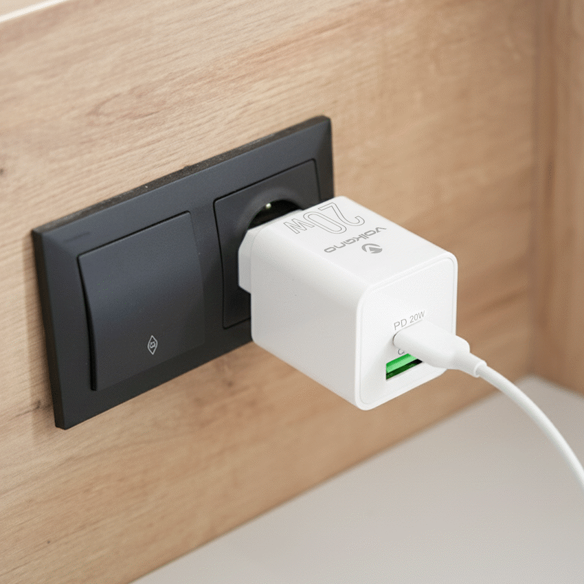 Quickly charge two devices simultaneously with the Volkano Dyna Duo wall charger. It delivers 20W Power Delivery via USB-C and Quick Charge 3.0 via USB-A for various phones and tablets. This Volkano accessory provides dependable power.