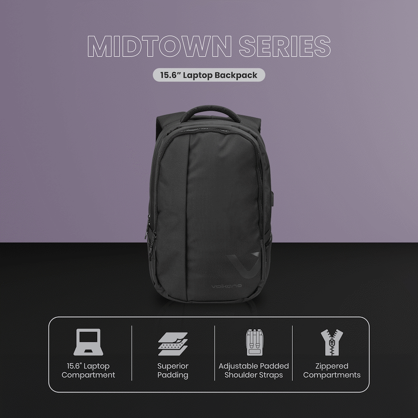 Volkano Midtown 15.6″ Laptop Backpack – Black