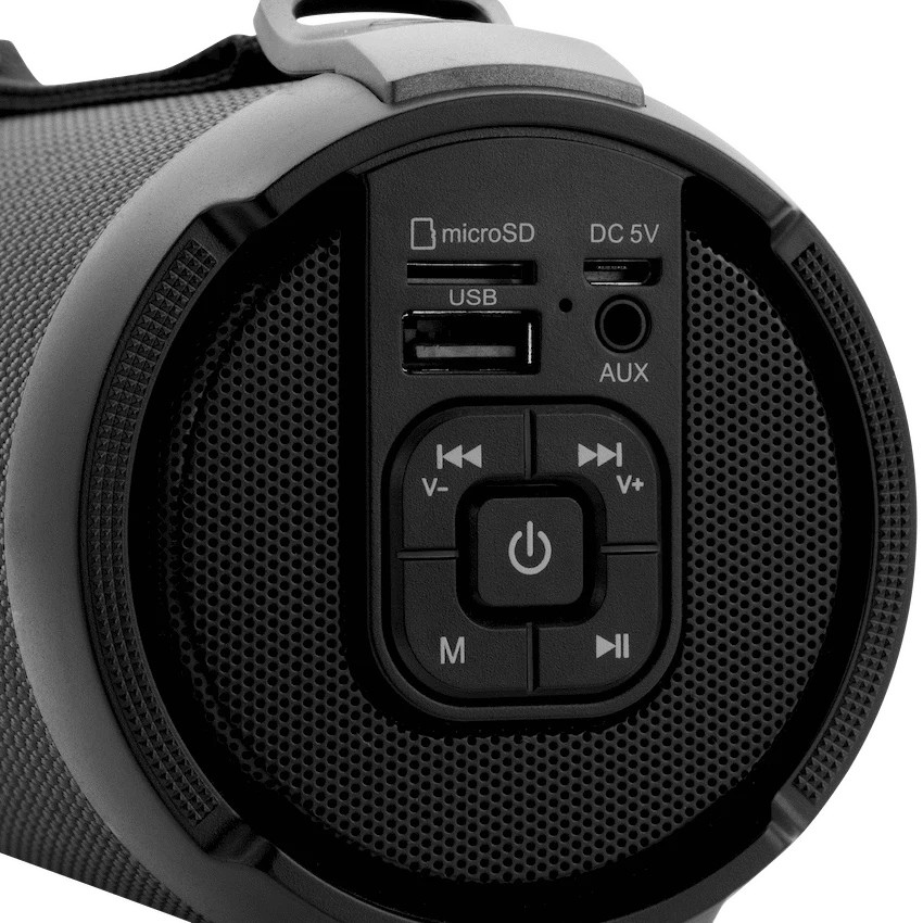 - Connectivity options include USB, AUX, and Micro SD inputs, along with a built-in FM Radio.