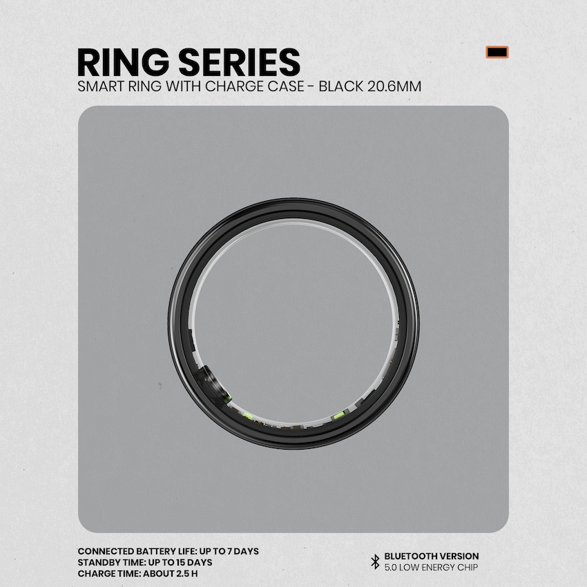 Volkano Ring Series Smart Ring with Charge Case – Black 20.6mm