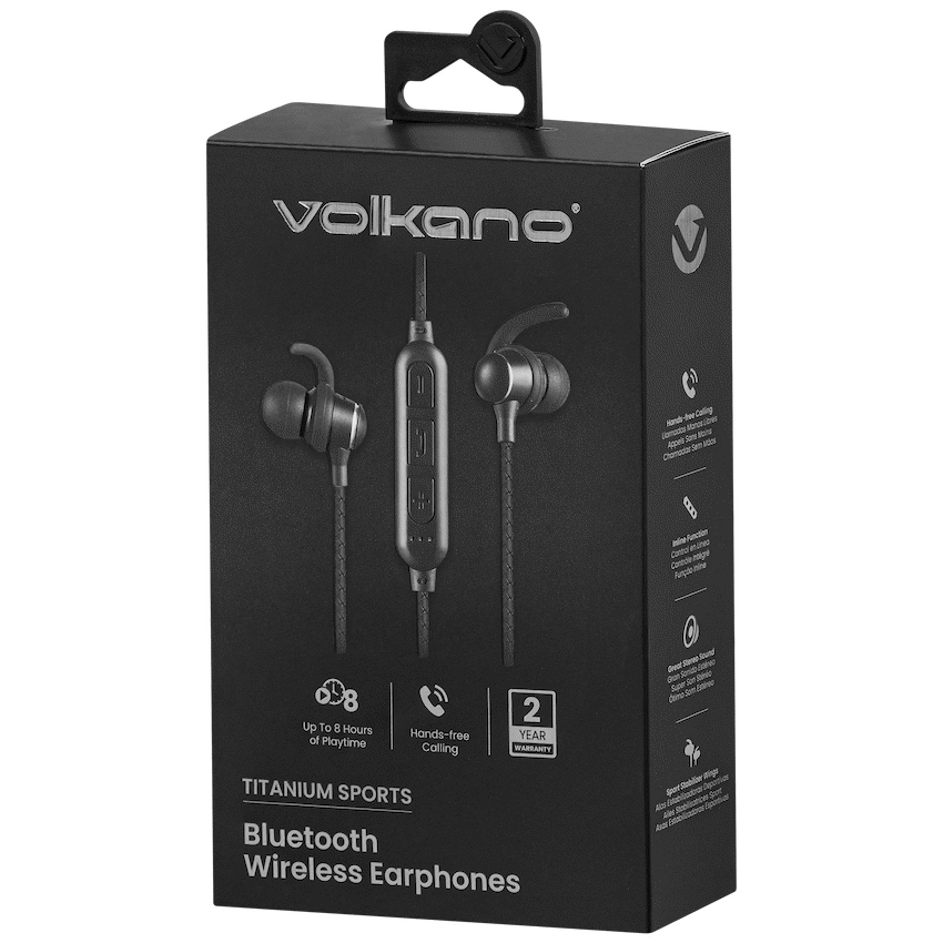 Stay powered through workouts and calls with Volkano Titanium Sports Series Bluetooth earphones. Bluetooth 5.0 gives a stable wireless connection. Enjoy up to 8 hours of playtime. The lightweight neckband keeps earbuds secure, making them a reliable Volkano accessory.