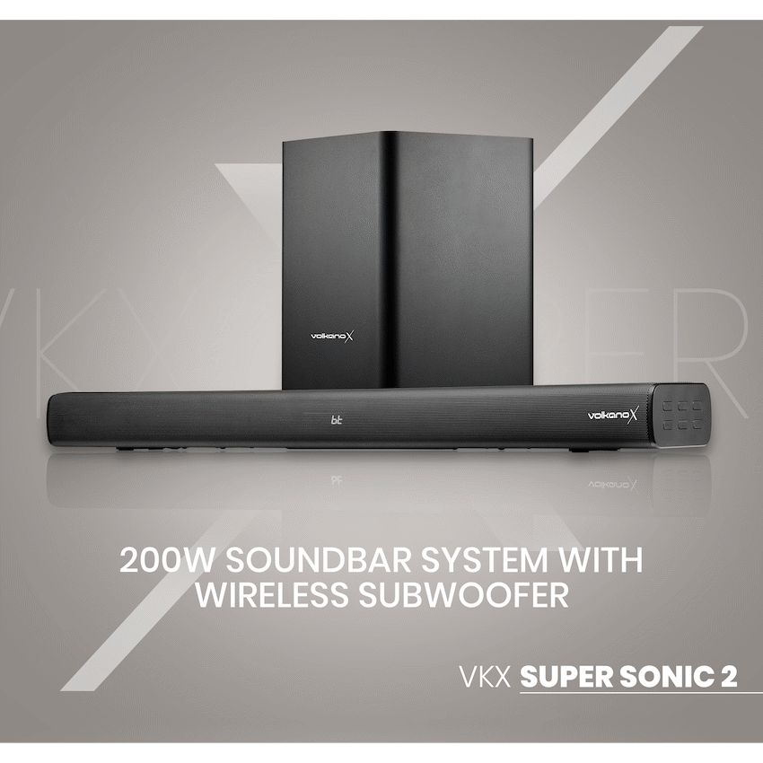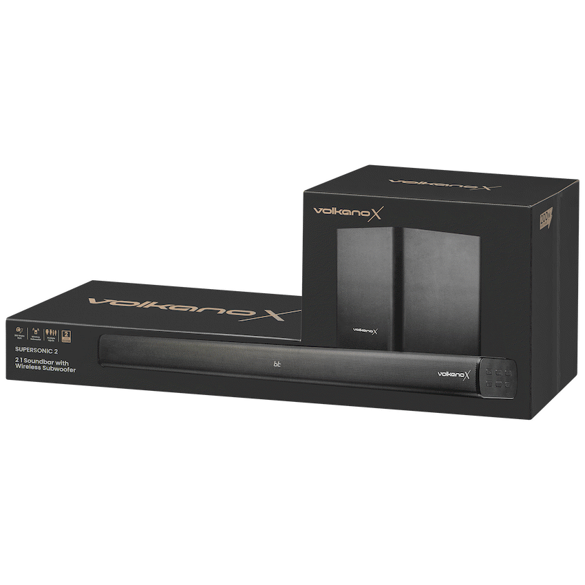Enjoy clear, rich sound for home entertainment with the VolkanoX Supersonic 2 Series 2.1 Soundbar. It delivers 200W of audio power and includes a wireless subwoofer for deep bass. This system enhances any VolkanoX home setup.