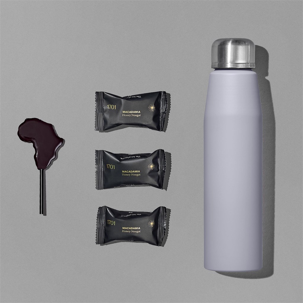 This Yatta Classic Capsule Hamper offers a thoughtful promotional gift. It includes a 700ml Altitude water bottle and Yatta nougat minis, all presented in a branded grey gift box with a Yatta ribbon. This makes a memorable Yatta branded item.