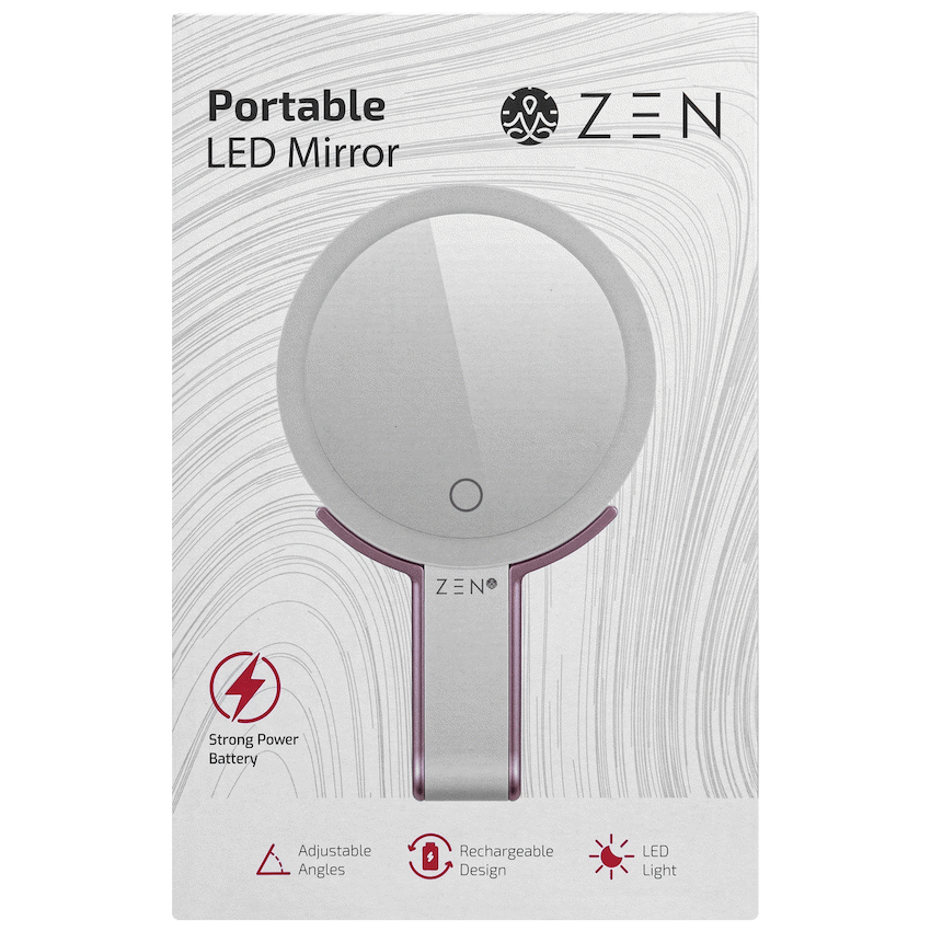 ZEN JestSet Series Portable Handheld LED Mirror – White